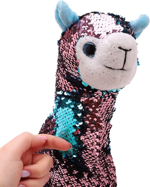 12 Inch Sparkly Alpaca with Reversible Sequins – Blue & Pink – Girls Plush Toys