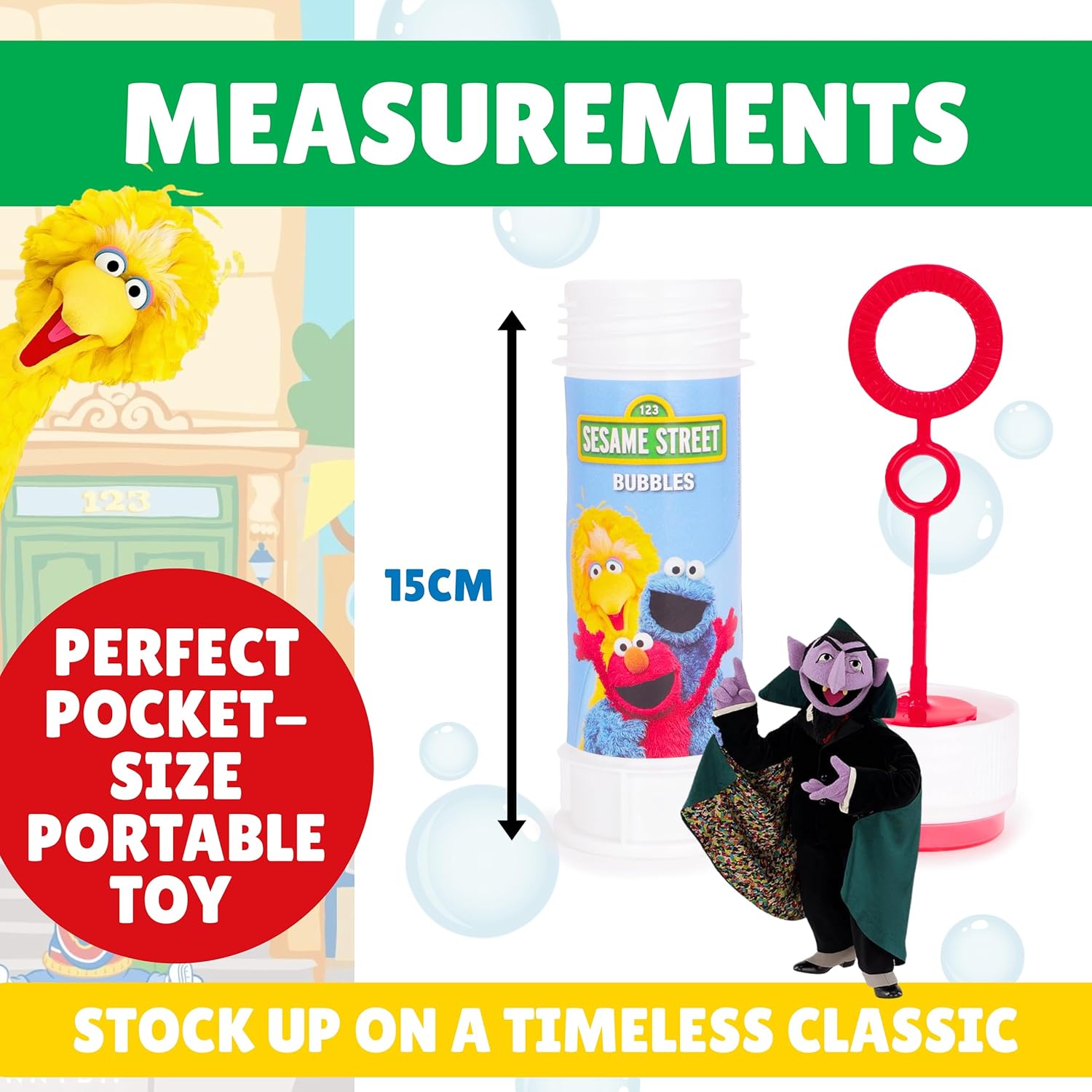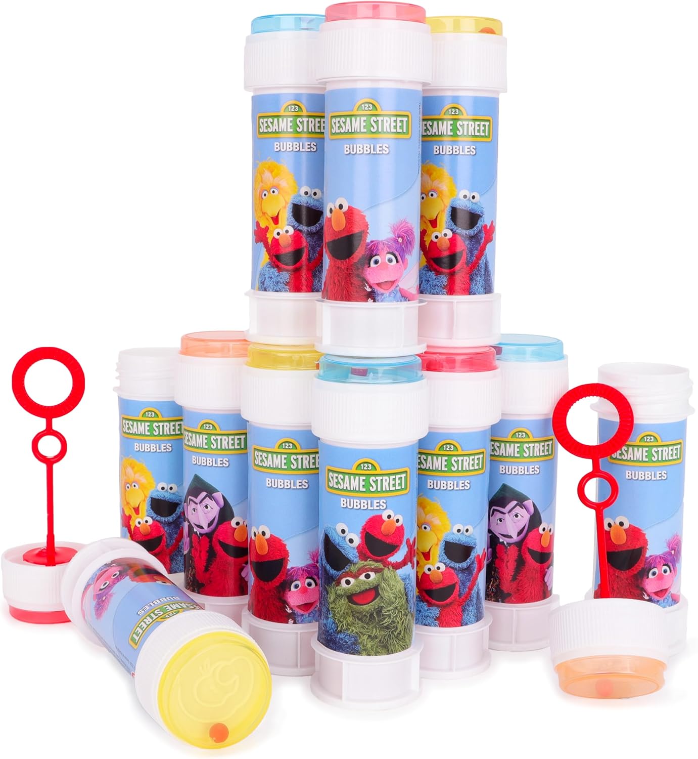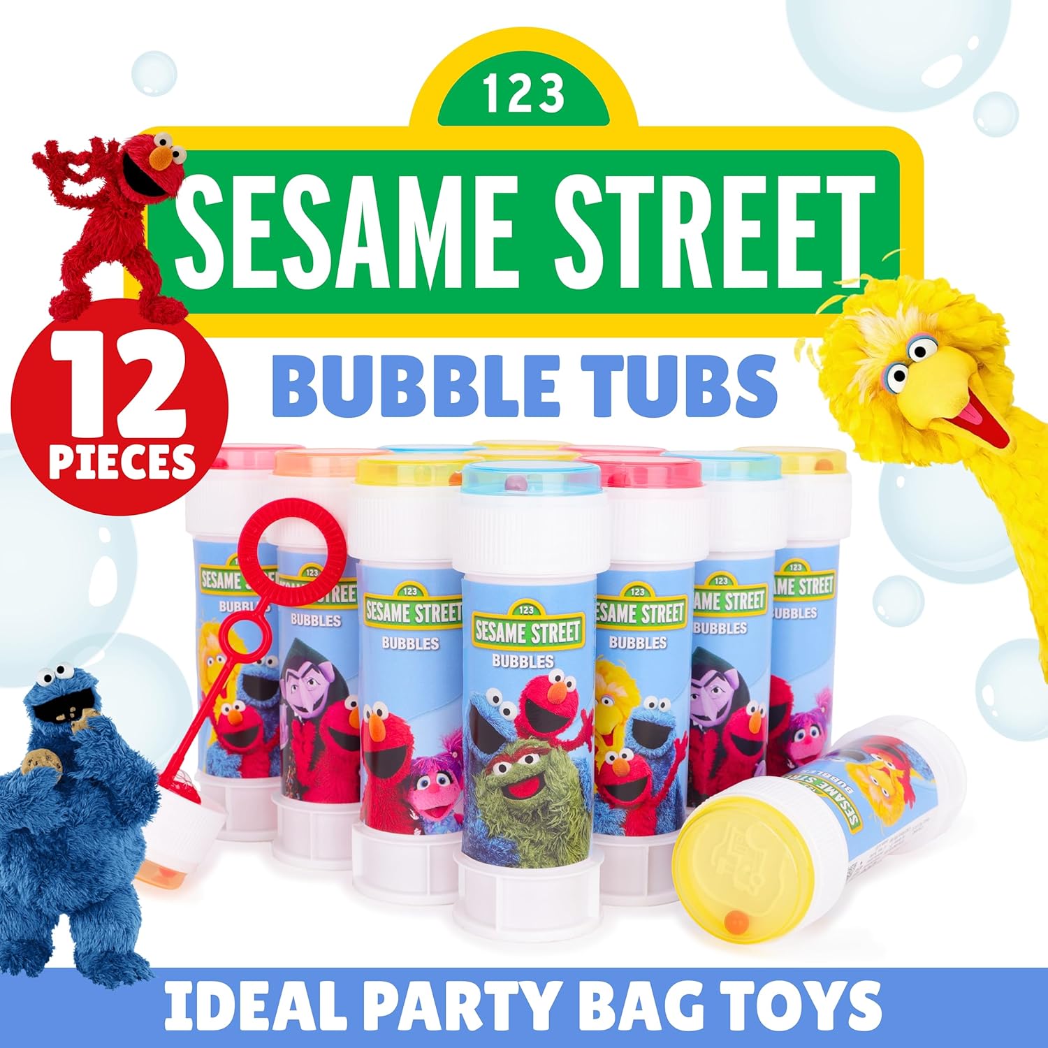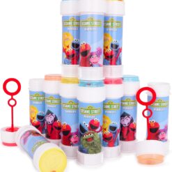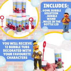 Pack of 12 Sesame Street Bubbles With Wands, 60ml Solution & Novelty Maze Lid – Pocket Money & Party Bag Toys