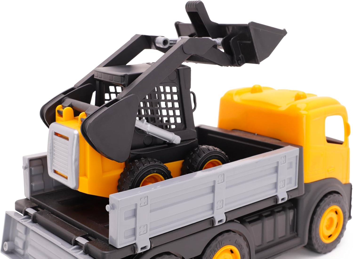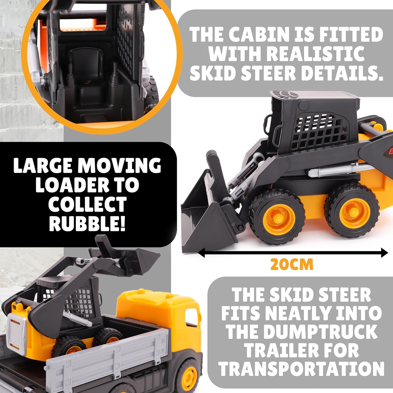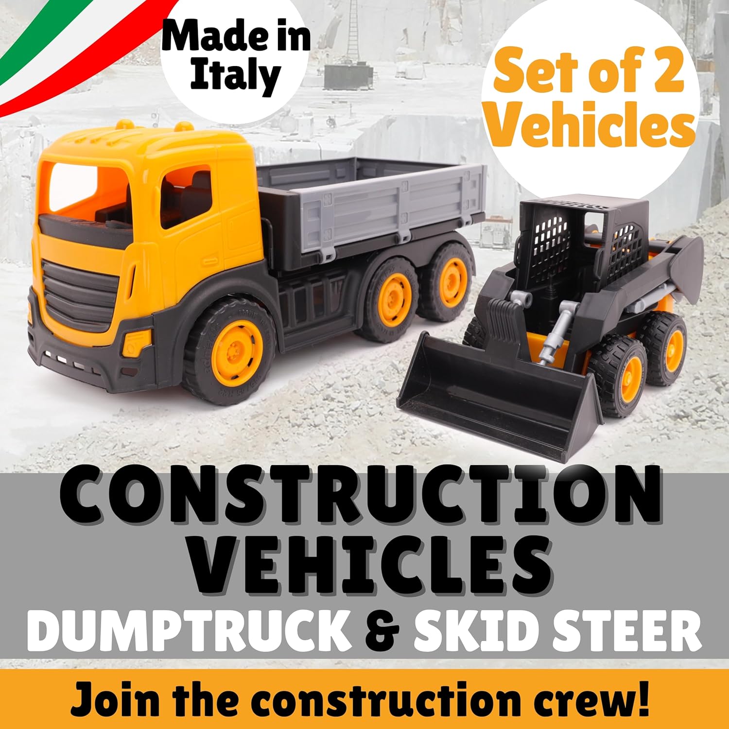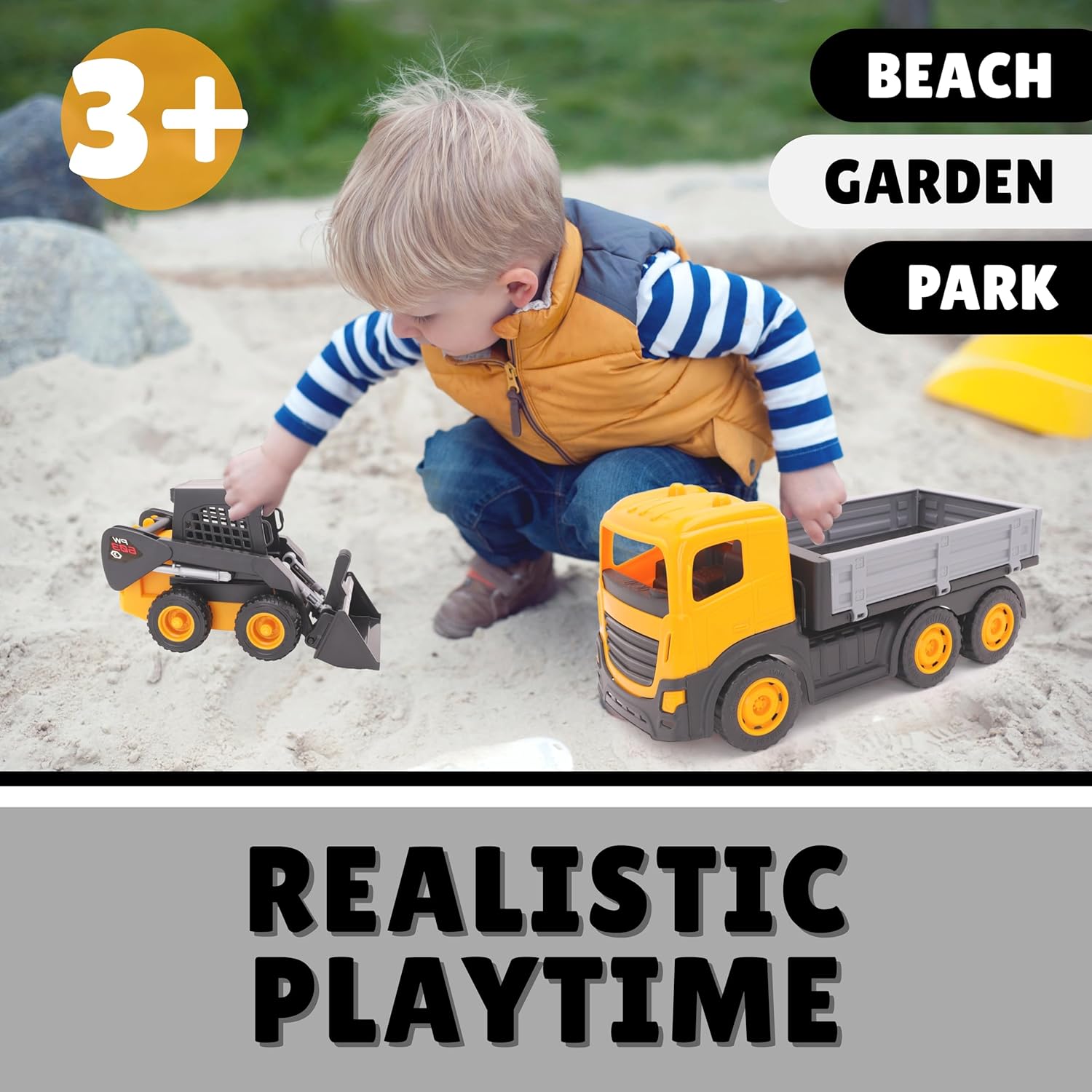 Set of 2 Construction Trucks – 36cm (14″) 6 Wheel Dump Truck & 20cm (8″) Mini Dozer With Moveable Wheels & Parts