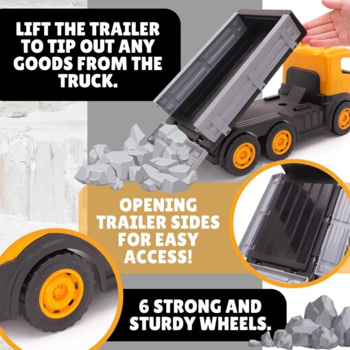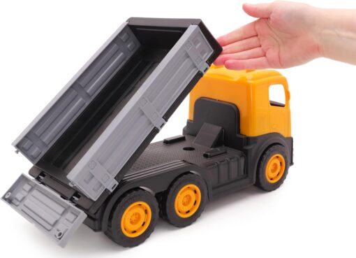 - The high quality dump truck comes with 6 moving wheels and a moveable dump box with moving door measuring 36 x 15.5 x 17.5cm