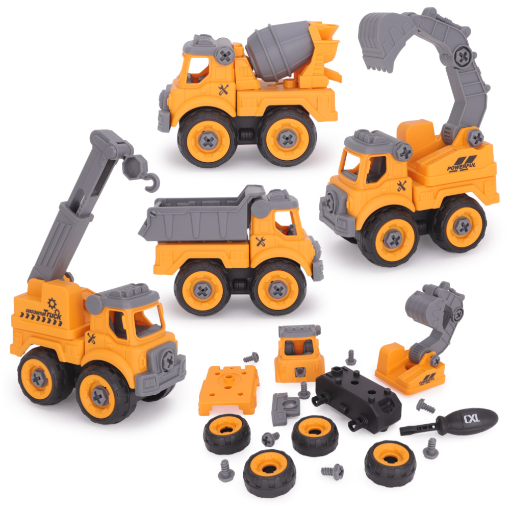 Set of 4-11cm (4.3″) DIY Construction Vehicles & Screwdriver – Assemble & Build Your Own Trucks – Toy Vehicles