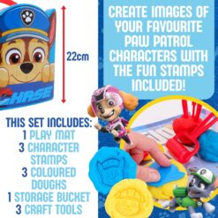 12 Piece Paw Patrol Chase Dough Bucket Activity Set – 3 Dough, 3 Cutters, 1 Roller, 3 Stamps, 1 Wipeable Play Screens & 1 Bucket – Arts & Crafts Toys