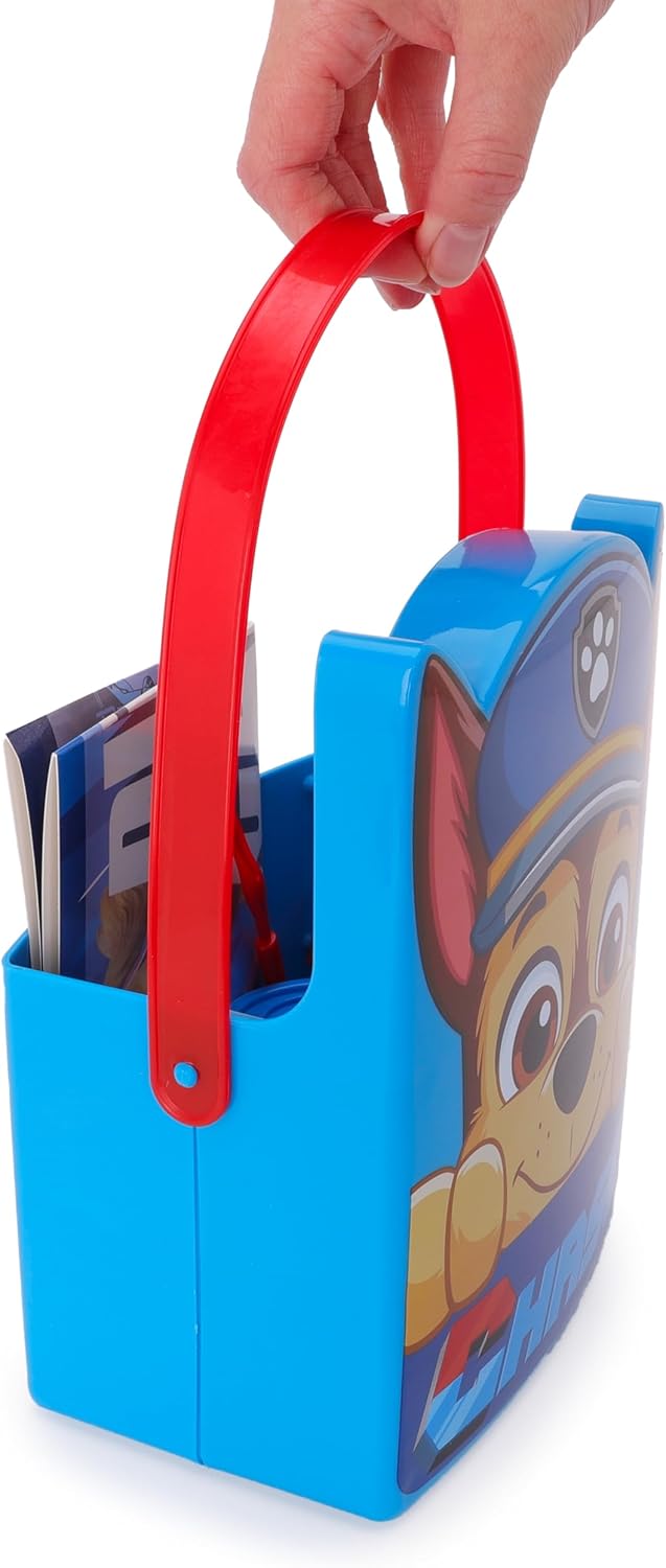 - Take the fun anywhere! The Chase-decorated bucket with carry handle makes it easy to play, store, and explore on the move