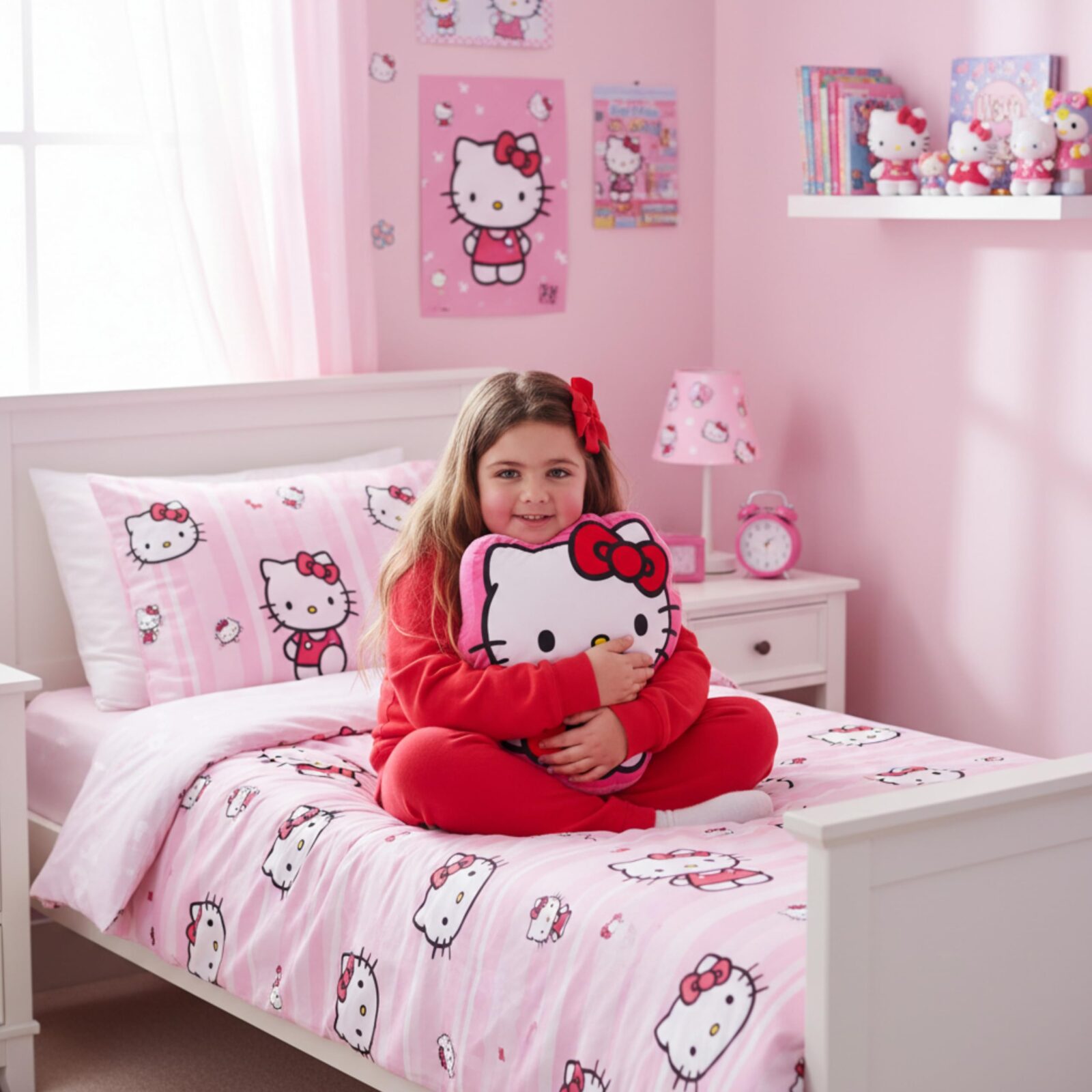 Adorable Hello Kitty Design: Shaped like the beloved character with her signature bow and cute expression, making it a perfect decorative and collectible piece.