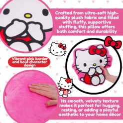 Shaped like the beloved character with her signature bow and cute expression, making it a perfect decorative and collectible piece. Crafted from ultra-soft high-quality plush fabric and filled with fluffy, supportive stuffing, this pillow offers both comfort and durability. Its smooth, velvety texture makes it perfect for hugging, resting, or adding a playful aesthetic to your home décor. The vibrant pink border and bold character design make it a standout piece that kids and collectors will love. Perfect as a gift for birthdays, holidays, or special occasions, this Hello Kitty pillow is a delightful addition to any plush collection. Place it on a bed, couch, reading nook, or nursery to create a cozy and cheerful atmosphere. This Hello Kitty pillow measures 34 x 32 x 7cm and is suitable for ages 3+.