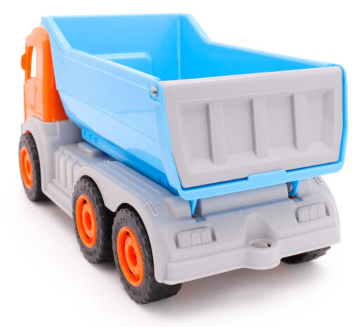 - Ditch and transport any material with ease with this blue and orange dump truck.