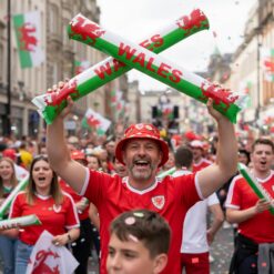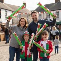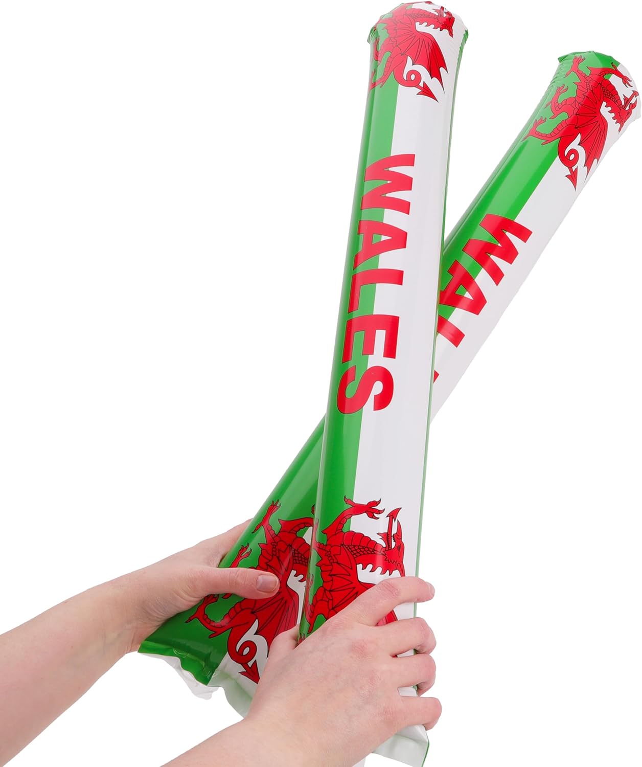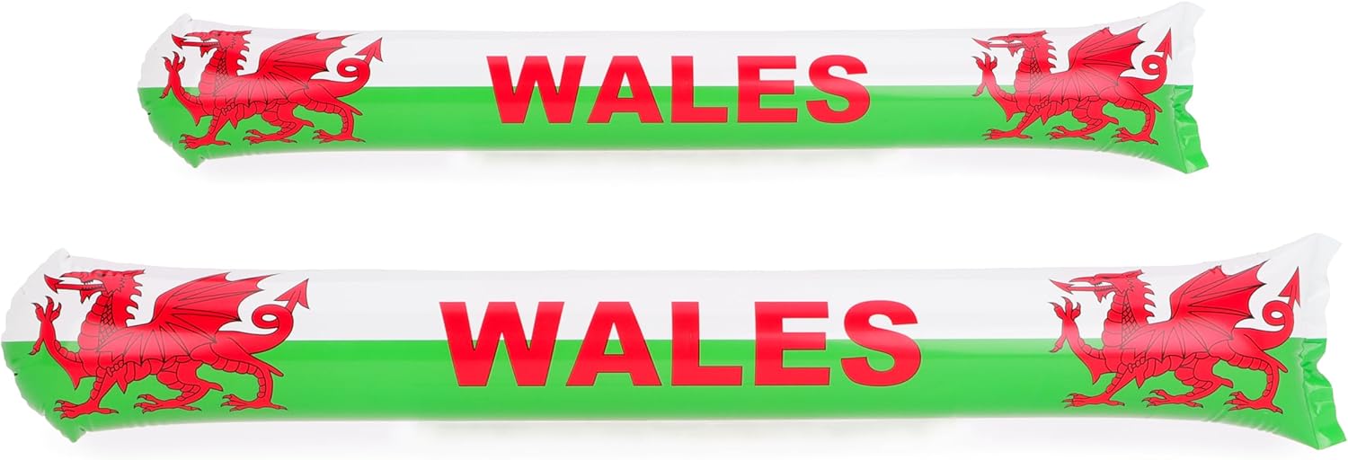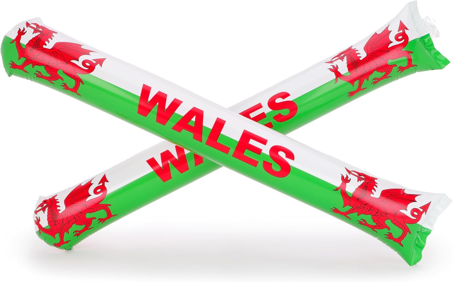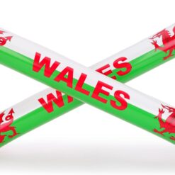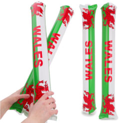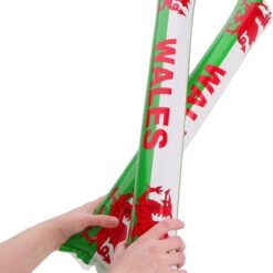 Show your Welsh pride with these fantastic bang bang sticks. The ultimate noisemakers for match days, national celebrations, and Welsh pride events. Simply inflate and clap together to create a powerful cheering sound that boosts stadium atmosphere instantly, delivering high-energy & excitement. These accessories are compact and portable when deflated – perfect for travel to football matches, festivals, and parades. This iconic red, green & white dragon flag design will stand out from the crowd as you cheer on your nation. Suitable for ages 3+. To be used under adult supervision.