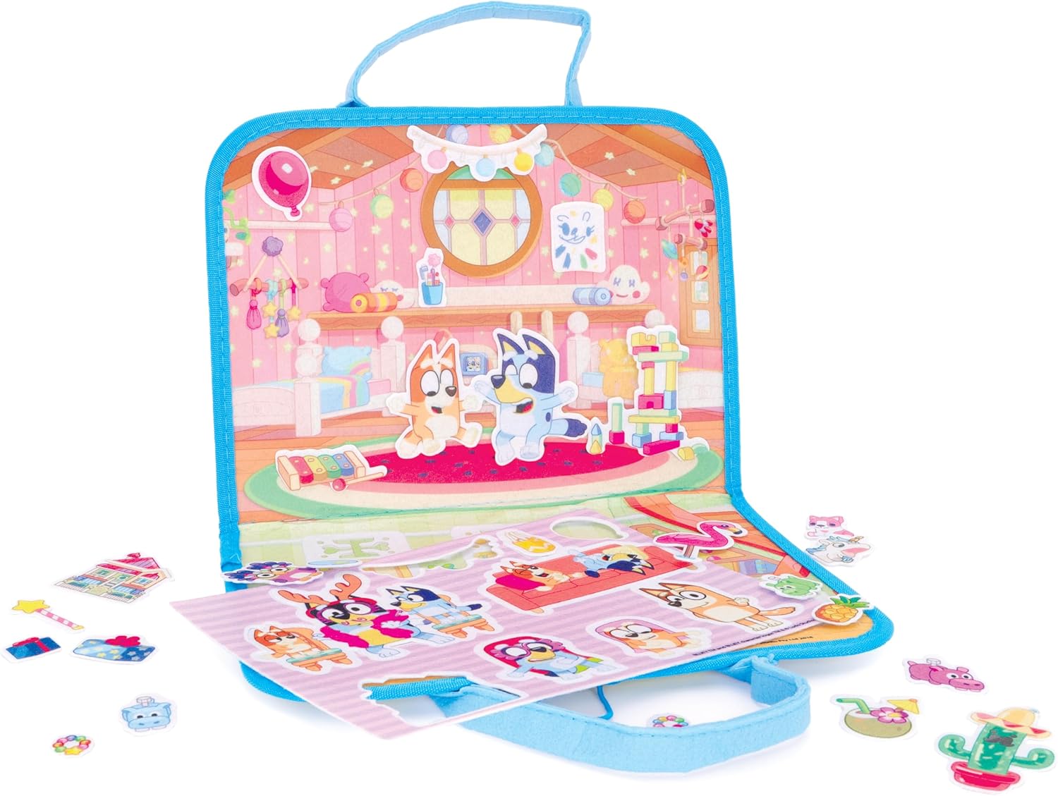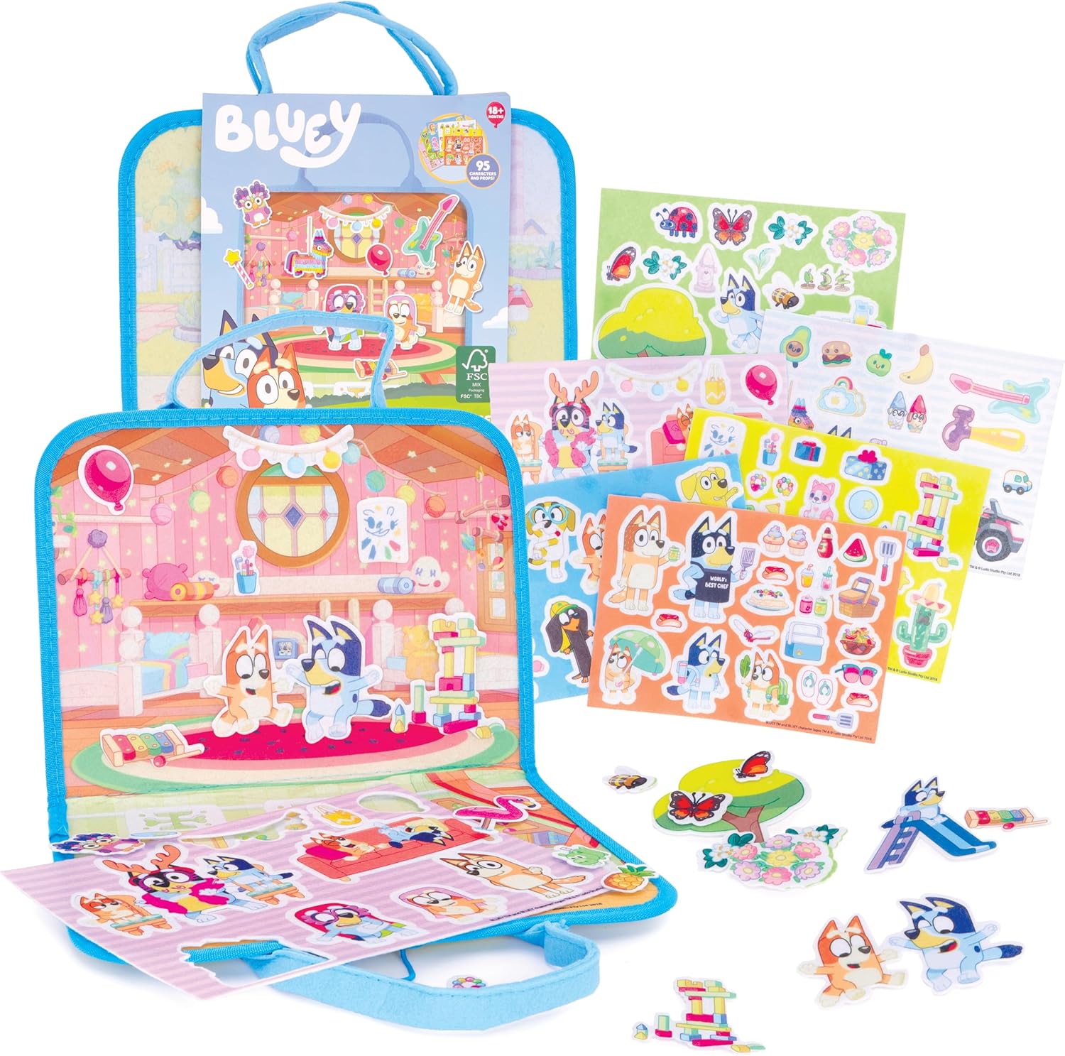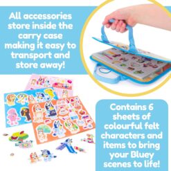 Toyland® 96 Piece Bluey Felt Activity Set – Portable Carry Case with 2 Scene Backgrounds – 95 Charcters & Props – Mess Free Imaginative Play Toys – Age 18 Months+