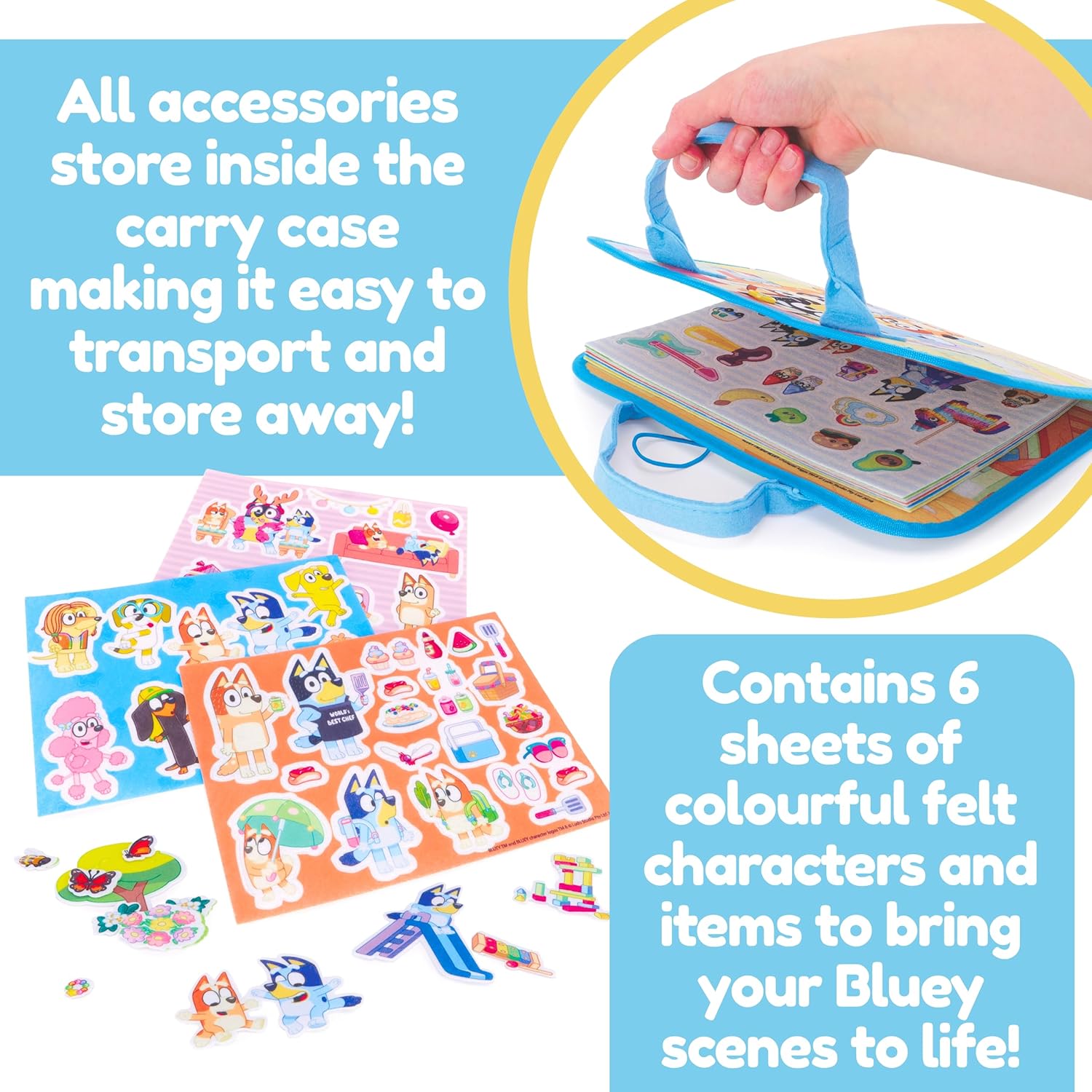 - Re-create your favourite Bluey episodes and bring the characters to life with this fantastic 96 piece felt activity set.