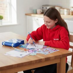 This isn’t just an activity kit – it’s a treasure chest. The sturdy blue case includes 4 secret doors and a cute key, letting kids safely store their creative goodies and they can unlock a special surprise every time! This set includes: 1 x Journal, 1 x Key, 2 x Gel Pens, 1 x Puffy Sticker Sheet, 1 x Stamp, 3 x Pencil Crayons, 1 x Paint Brush, 1 x Scratch Art Tool, 2 x A6 Water Colour Page, 2x A6 Scratch Art, 10 x A6 Sheets Lined Paper, 10 x A6 Sheets Plain Paper, and 1 x A6 Stickers. Made from sturdy plastic with tropical-inspired details and vibrant Stitch artwork. This compact case is both durable, portable and eye-catching, making it great for travel or everyday play. This set allows you to unlock a world of creativity with everything included for drawing, colouring, painting, and decorating! Encourages creativity, storytelling, and hands-on learning through different activities. The Stitch journal case measures 19cm (8“) and is suitable for ages 3+.