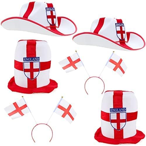 - Contents: This fantastic bundle consist of 6 hats. 2 x England design cowboy hats, 2 x England Headboppers and 2 x England design top hats.