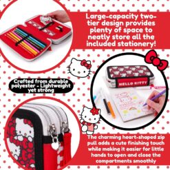 Toyland® Hello Kitty Two-Tier Zipped Filled Pencil Case – Includes: 1 Notebook, 7 Coloured Pencils, 8 Felt Tip Pens, Pencil, Ruler, Eraser, Sharpener – Kids School Stationery & Organiser