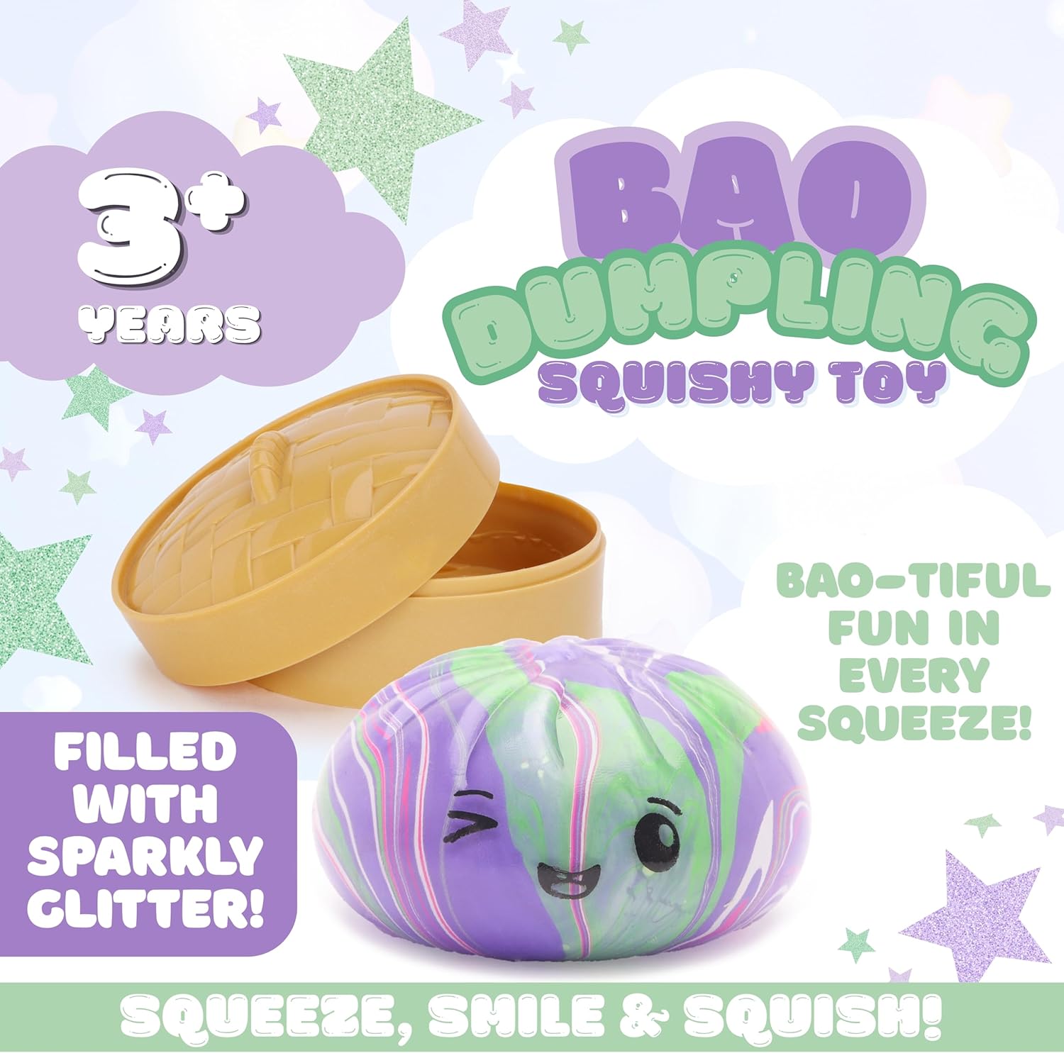 - Bao-tiful fun in every squeeze, shaped like a cute bao dumpling and packaged in a reusable plastic steamer box, it delivers satisfying squish with irresistible charm.