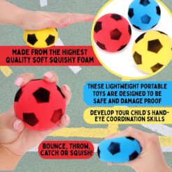 Get ready for endless indoor and outdoor fun with this Pack of 3 Mini Foam Footballs! Made from the highest quality soft squishy foam, these lightweight portable toys are designed to be safe and damage proof making them Ideal for indoor play on rainy days. Their small compact size 7.5cm (3″) in diameter is great for little hands to grip, throw and catch and will help to develop your child’s coordination and fine motor skills. There are 3 colours available red, yellow and blue. You will get 3 footballs and colours will be chosen at random. Made in Italy. Not suitable for children under 3 years.