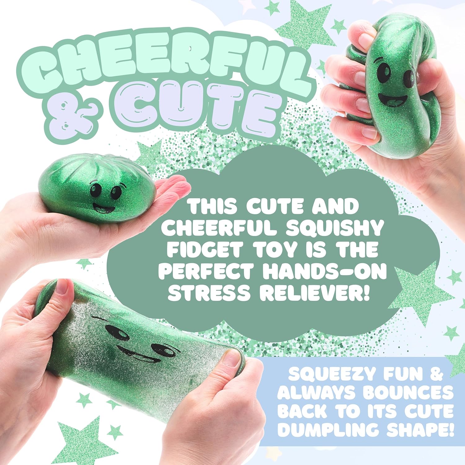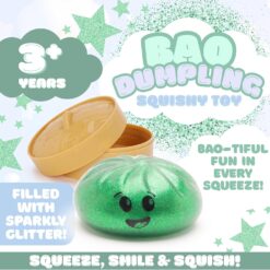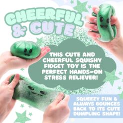 - Squeeze, squish, and smile! This adorable Toyland Shiny Green squishy bao dumpling sensory toy is the perfect hands-on stress reliever and fidget toy for kids and adults alike!