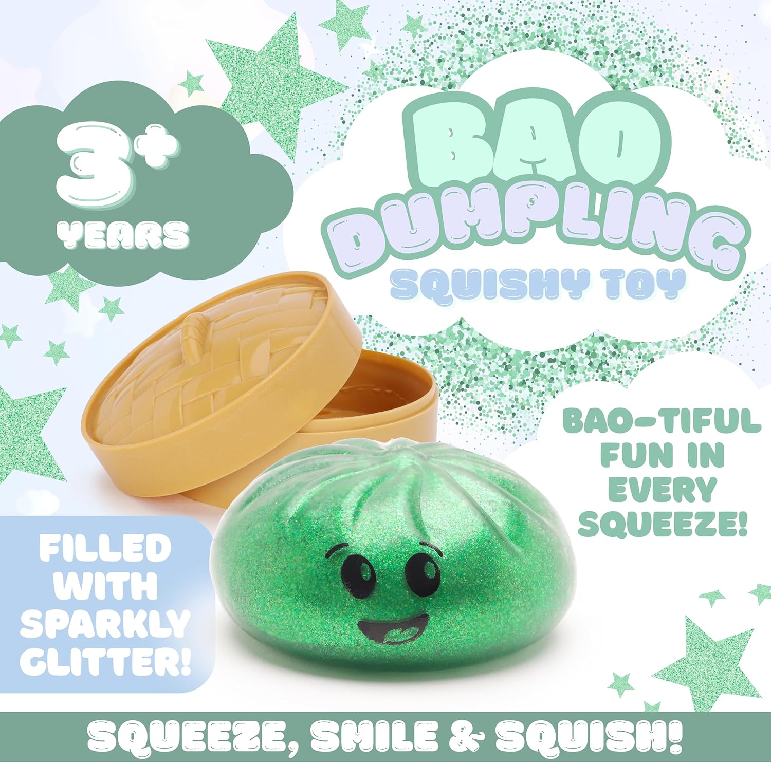 - Bao-tiful fun in every squeeze, shaped like a cute bao dumpling and packaged in a reusable plastic steamer box, it delivers satisfying squish with irresistible charm.